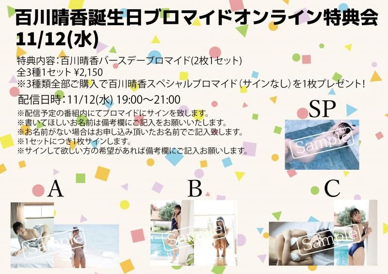 『11/12(水)百川晴香誕生日ブロマイドオンライン特典会』